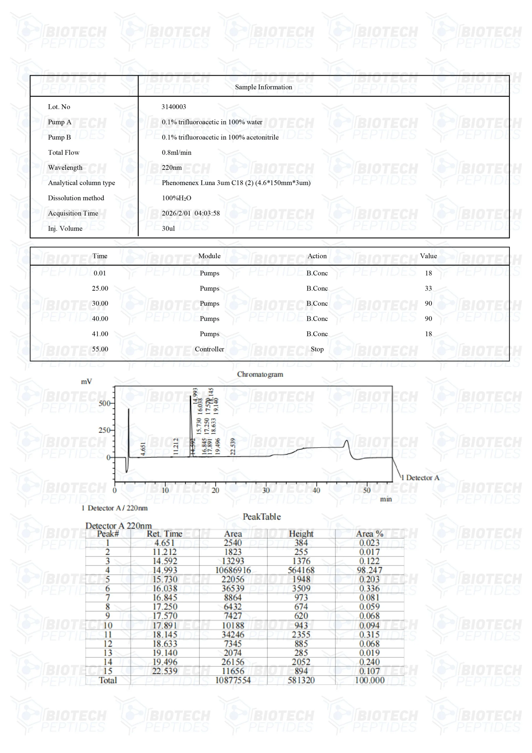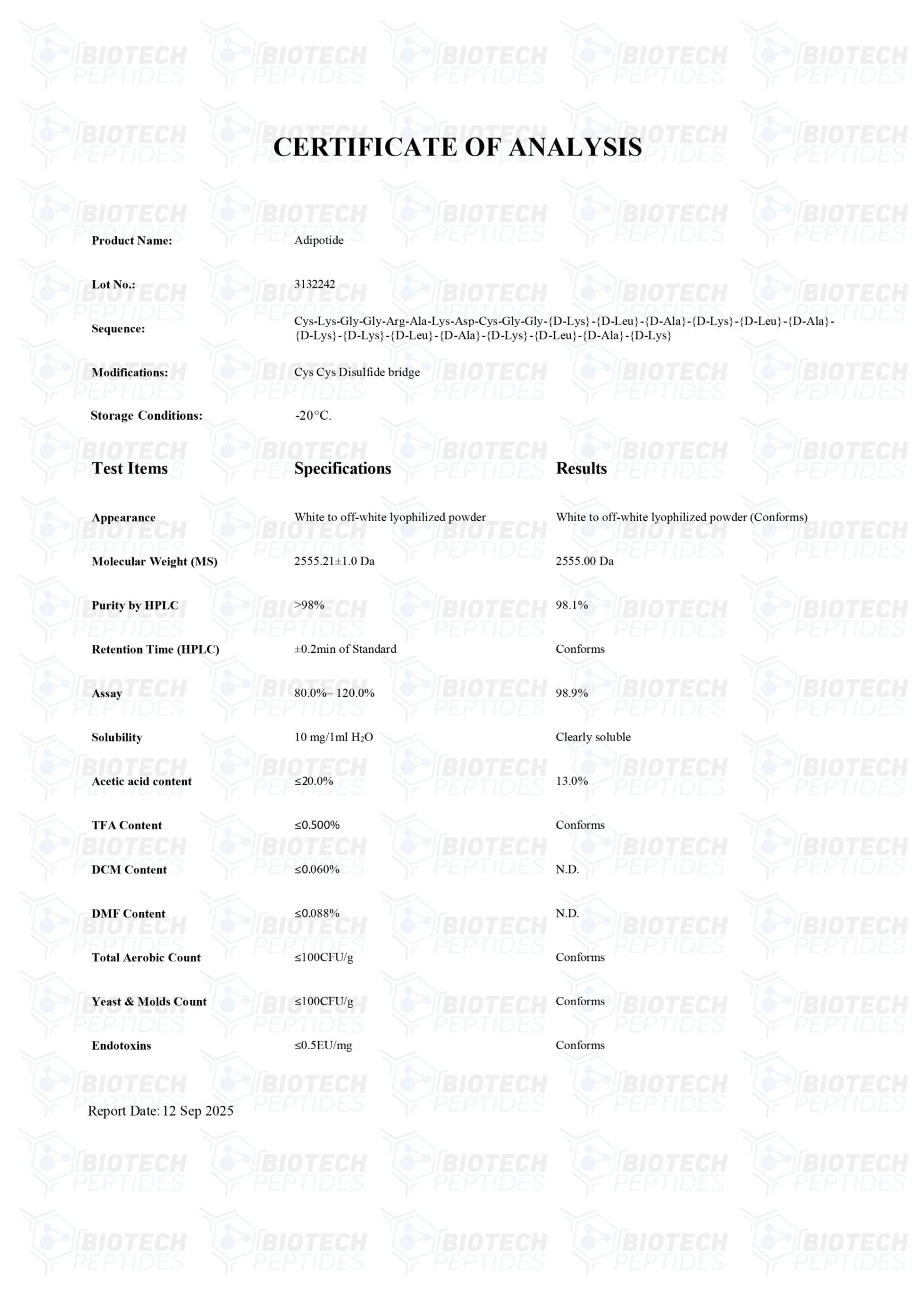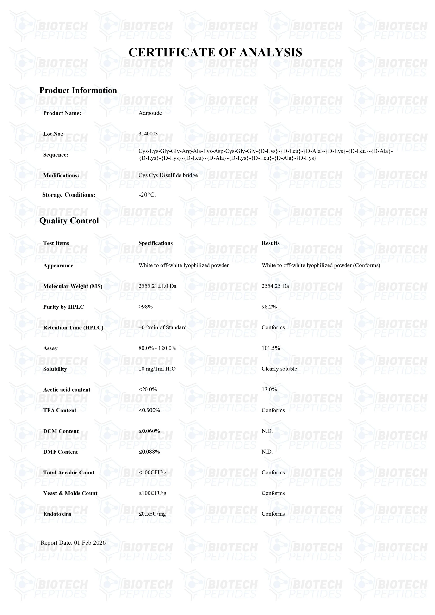 Adipotide FTPP peptides are Synthesized and Lyophilized in the USA.
