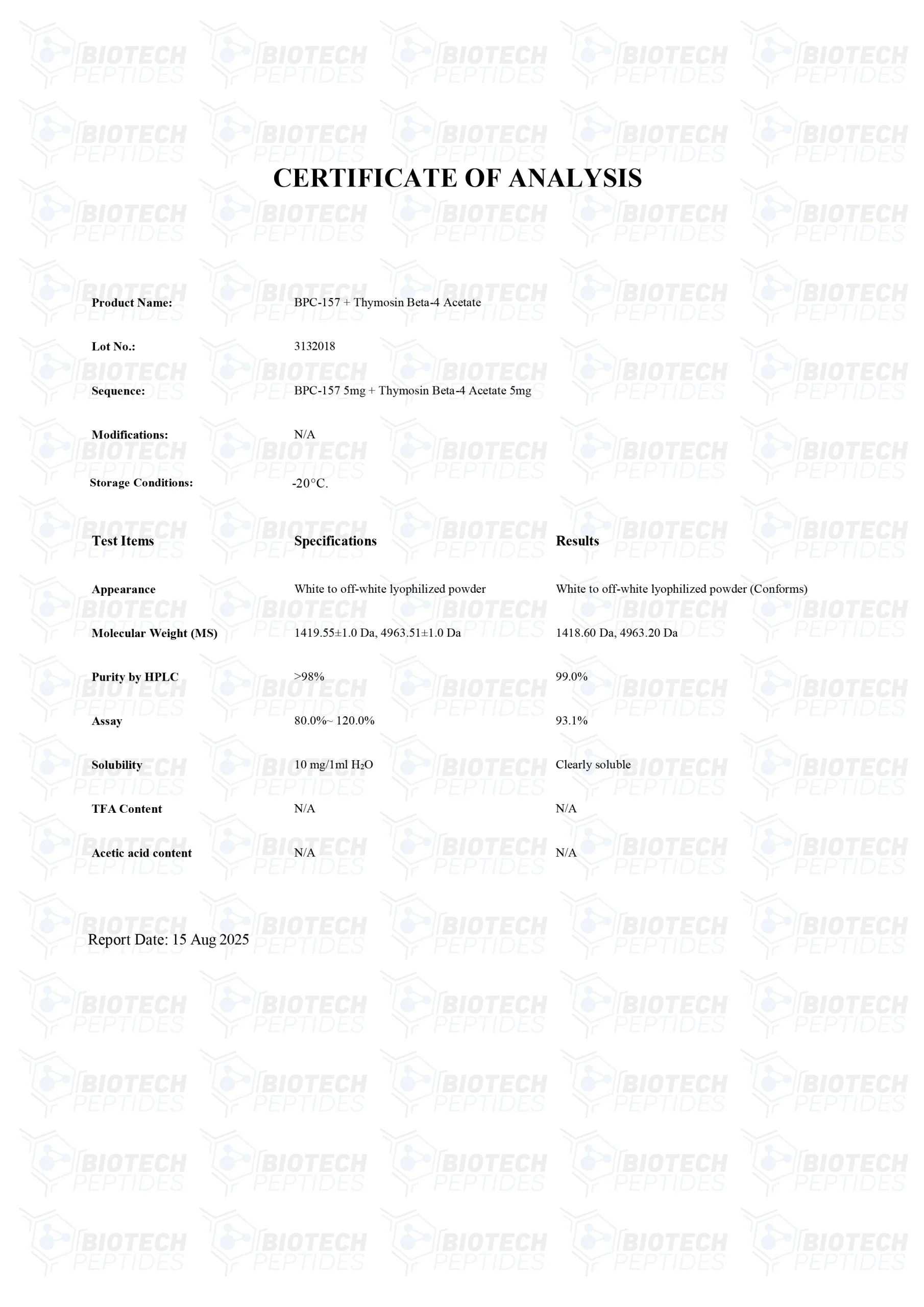 BPC-157 & TB-500 blend is Synthesized and Lyophilized in the USA.