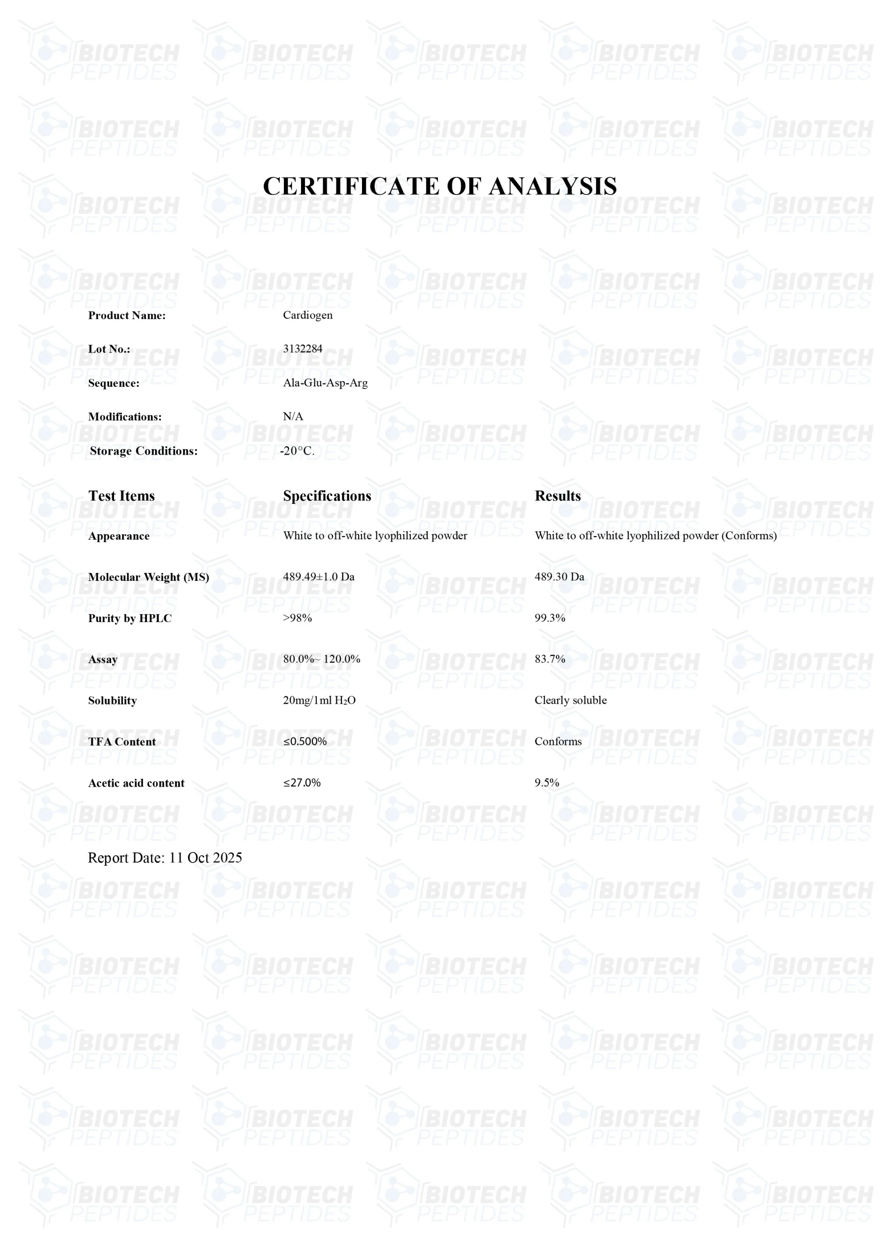 Cardiogen peptides are Synthesized and Lyophilized in the USA.
