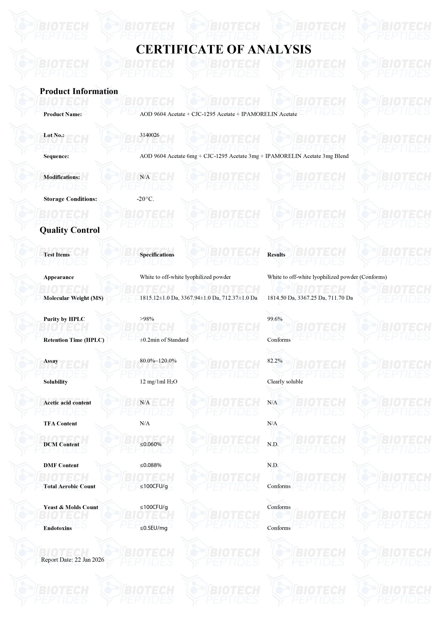 Fragment 176-191 & CJC-1295 & Ipamorelin Blend are Synthesized and Lyophilized in the USA.