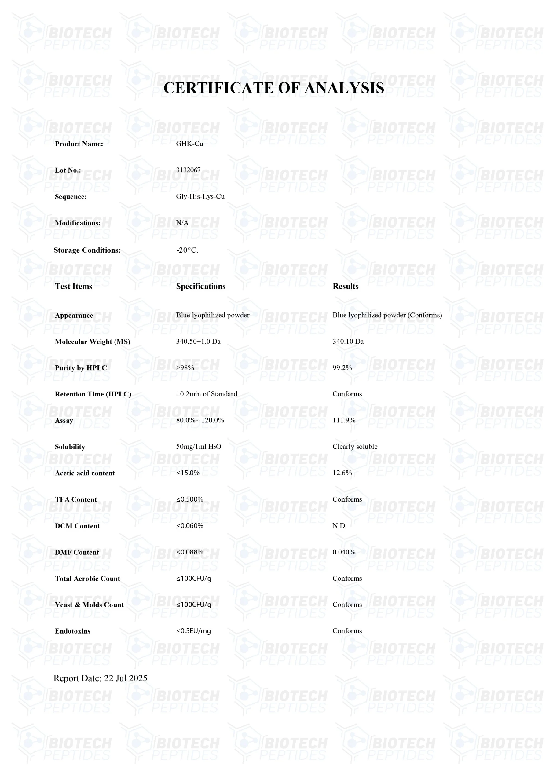 GHK-CU (Copper) peptides are Synthesized and Lyophilized in the USA.