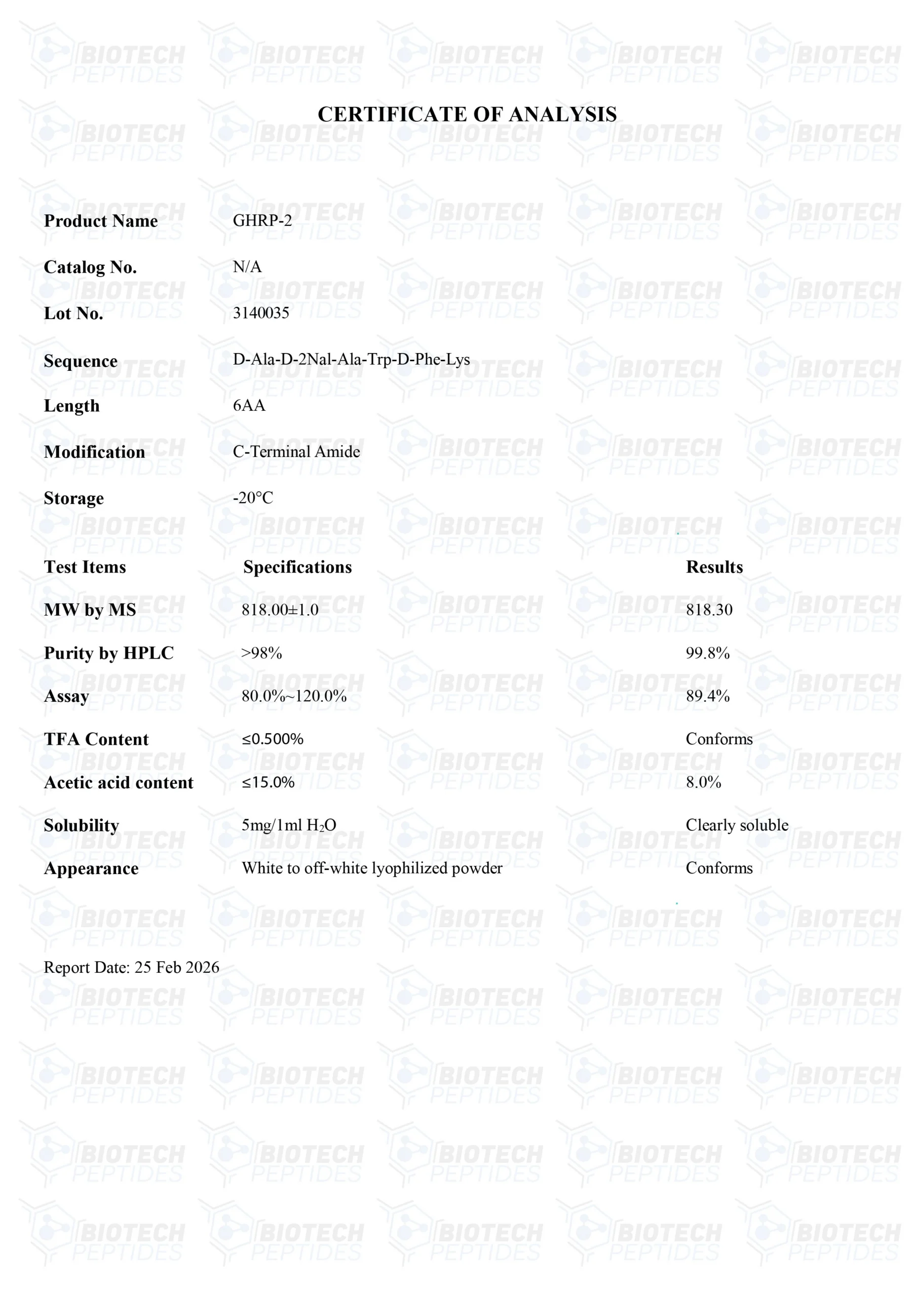 GHRP-2 peptides are Synthesized and Lyophilized in the USA.