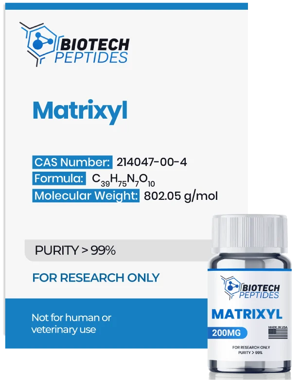 Further research suggests that by potentially boosting collagen production by fibroblasts, Matrixyl might counteract the degradation of the dermal matrix associated with photoaging.[3] This degradation is often linked to the formation of wrinkles and a loss of skin structure elasticity. Therefore, Matrixyl may be a promising candidate for laboratory research focused on mitigating dermal cell photoaging by supporting the skin's structural support through collagen synthesis.