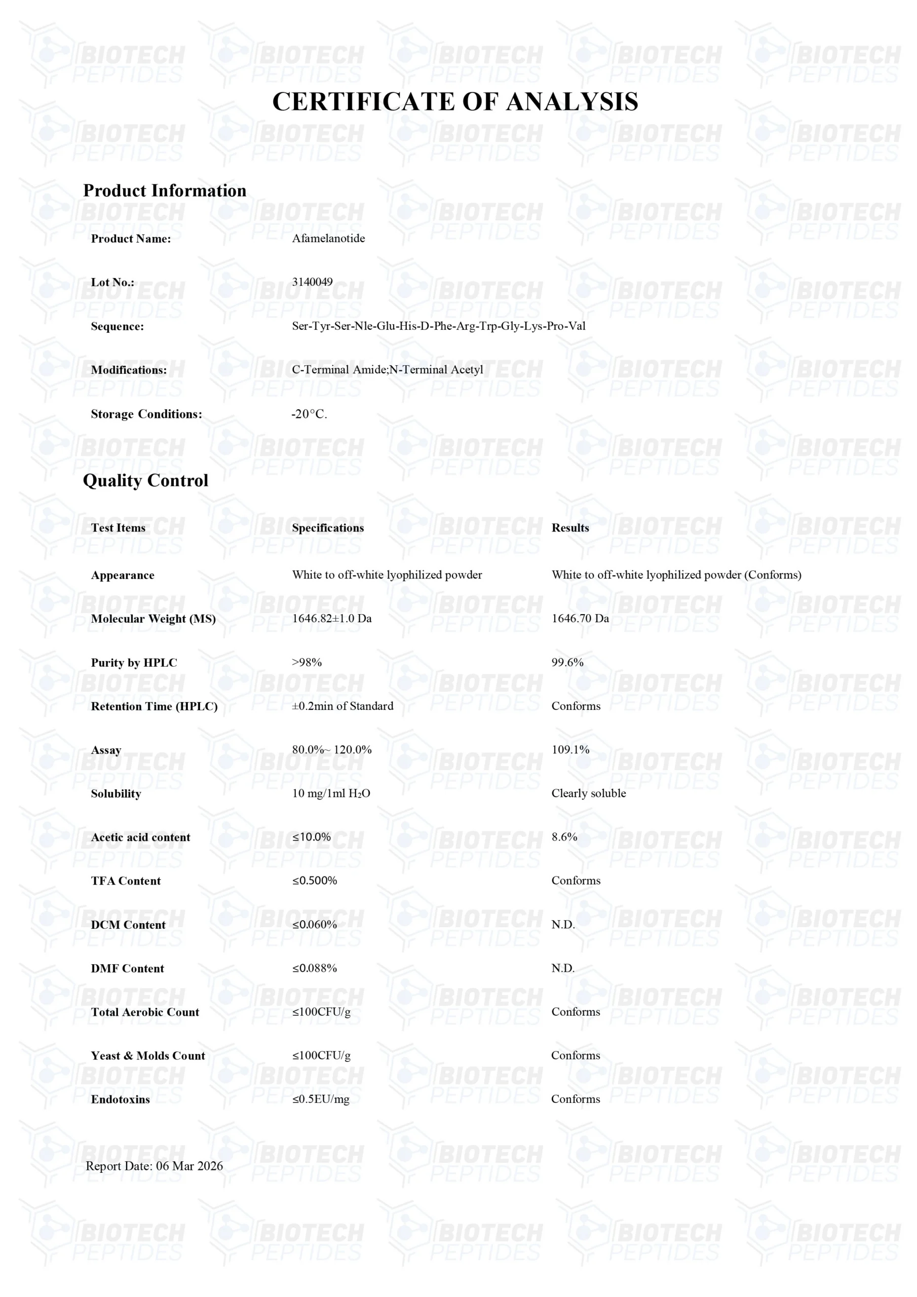 Melanotan 1 peptides are Synthesized and Lyophilized in the USA.