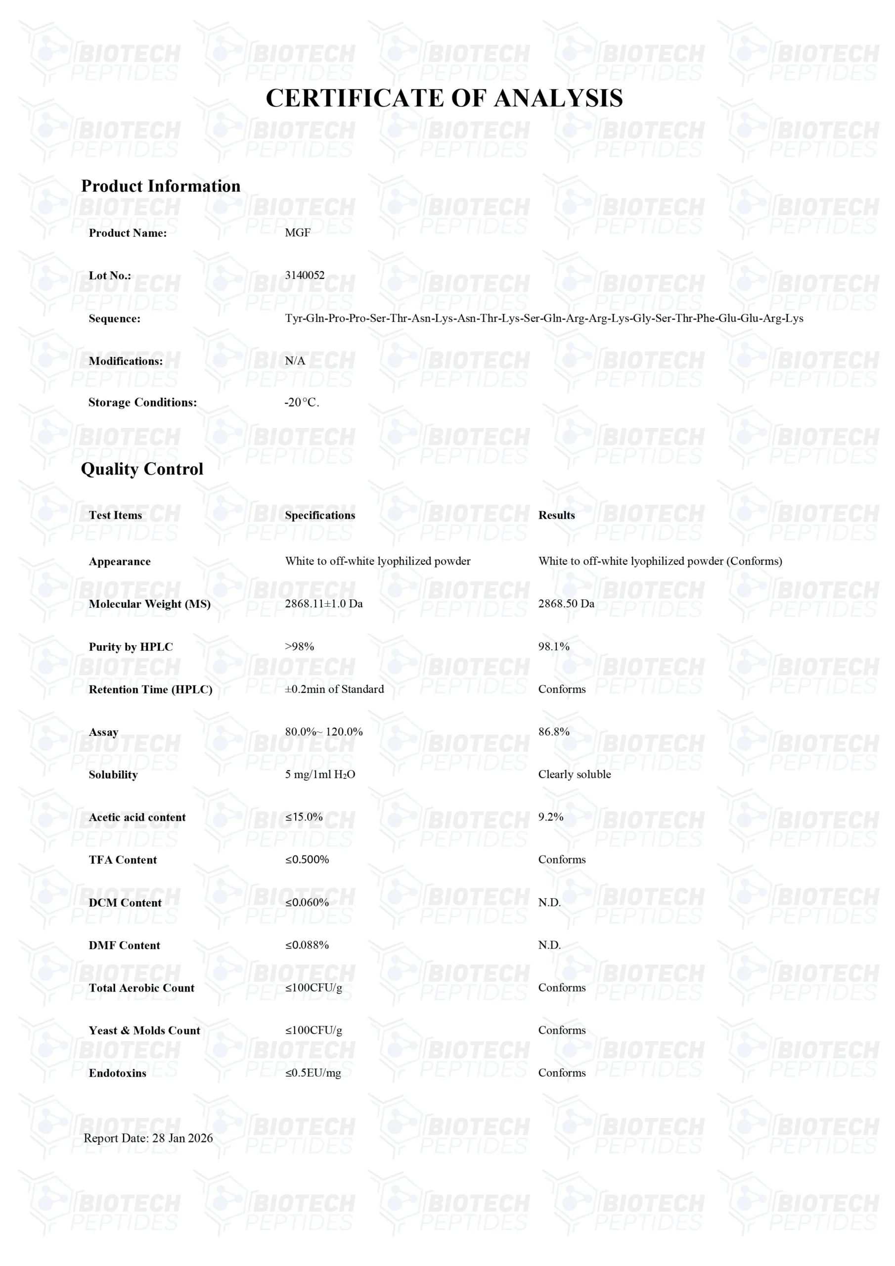 MGF (Mechano-Growth Factor) peptides are Synthesized and Lyophilized in the USA.