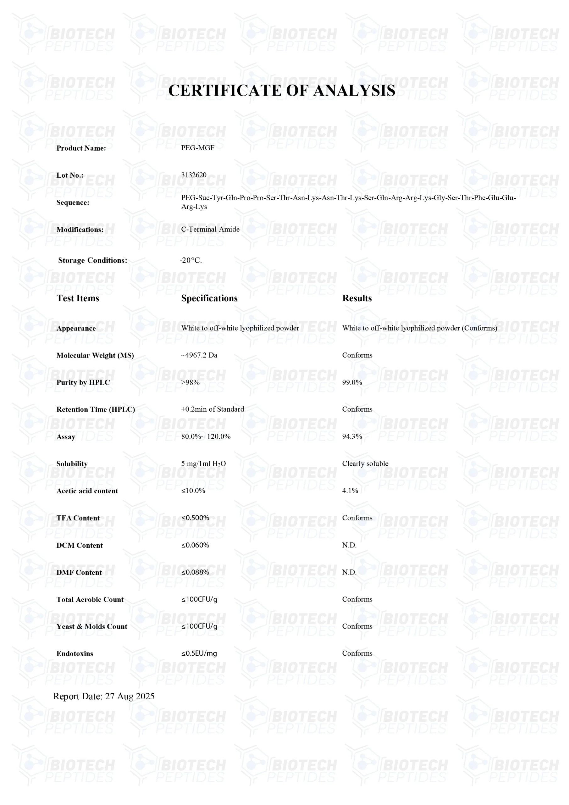 Other Known Titles: Pegylated MGF, Pegylated Mechano Growth Factor