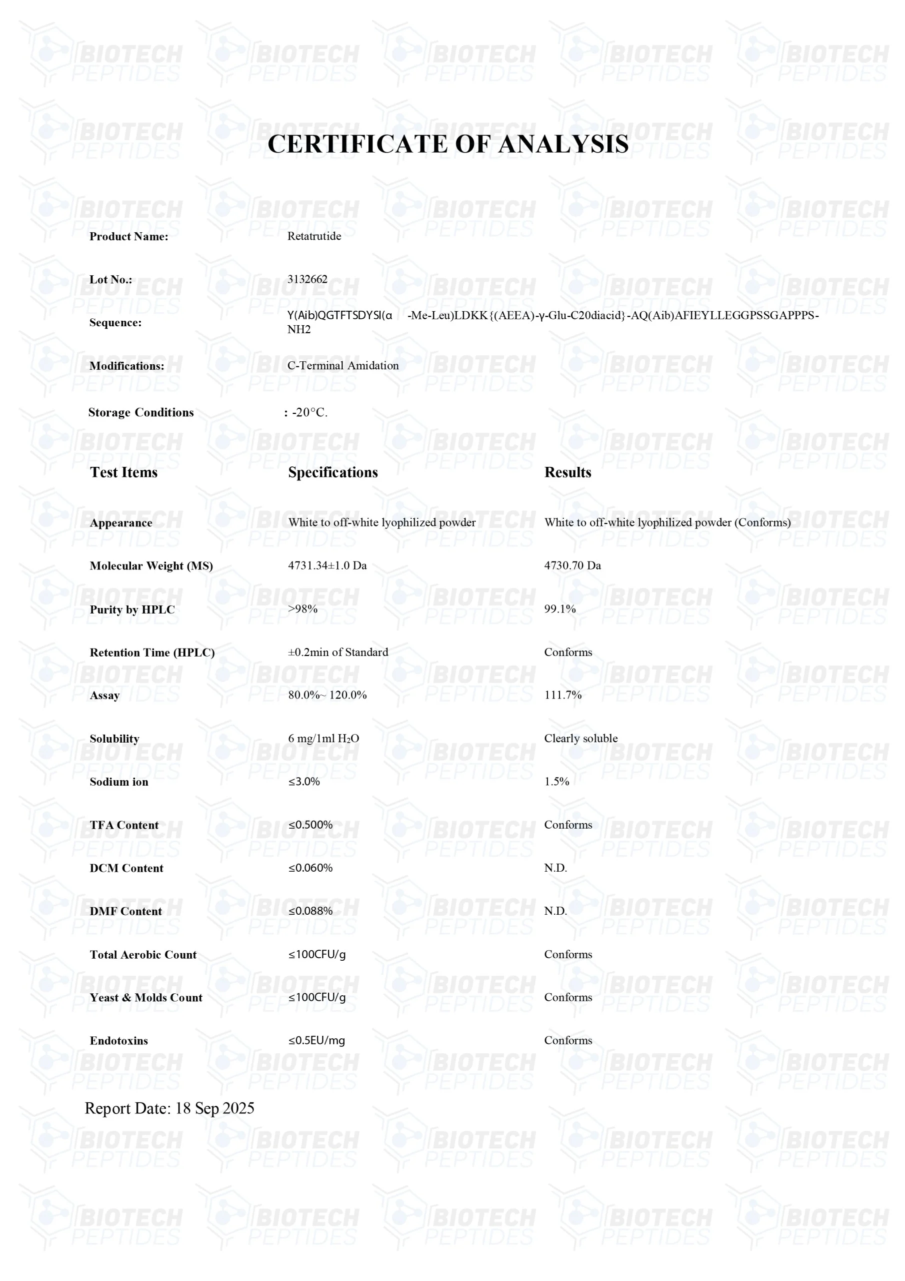 Retatrutide peptides are Synthesized and Lyophilized in the USA.