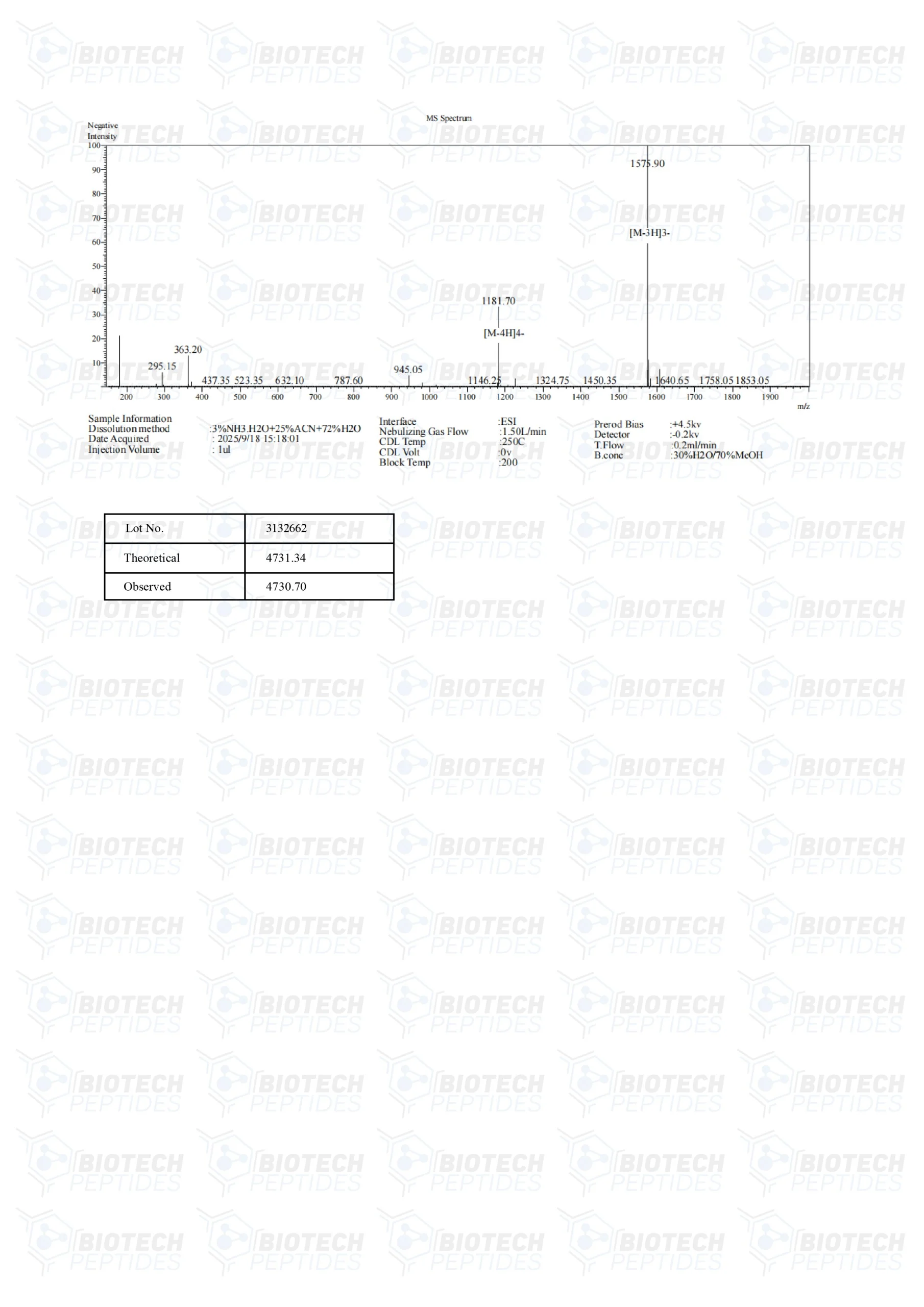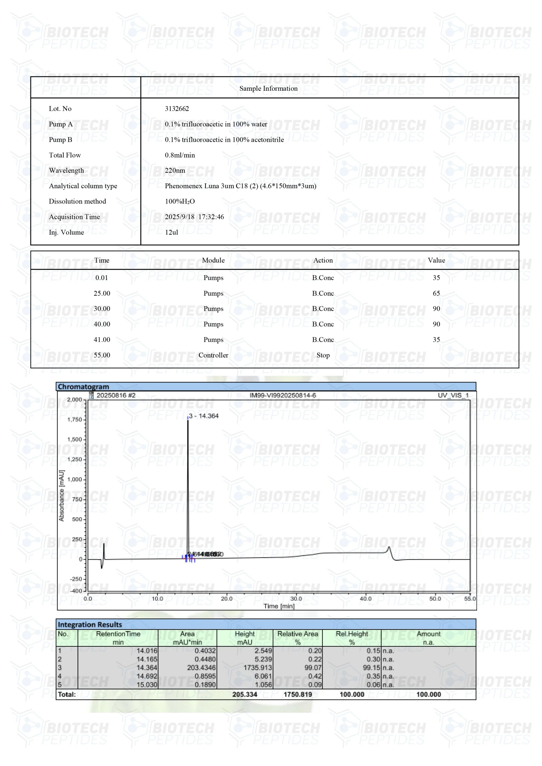 This product is strictly for research/laboratory use only. Human or animal use and/or consumption is strictly prohibited by law. Only qualified and licensed professionals should handle these products. Any information found on Biotech Peptides is strictly for educational purposes only. Refer to our terms and conditions for more details.