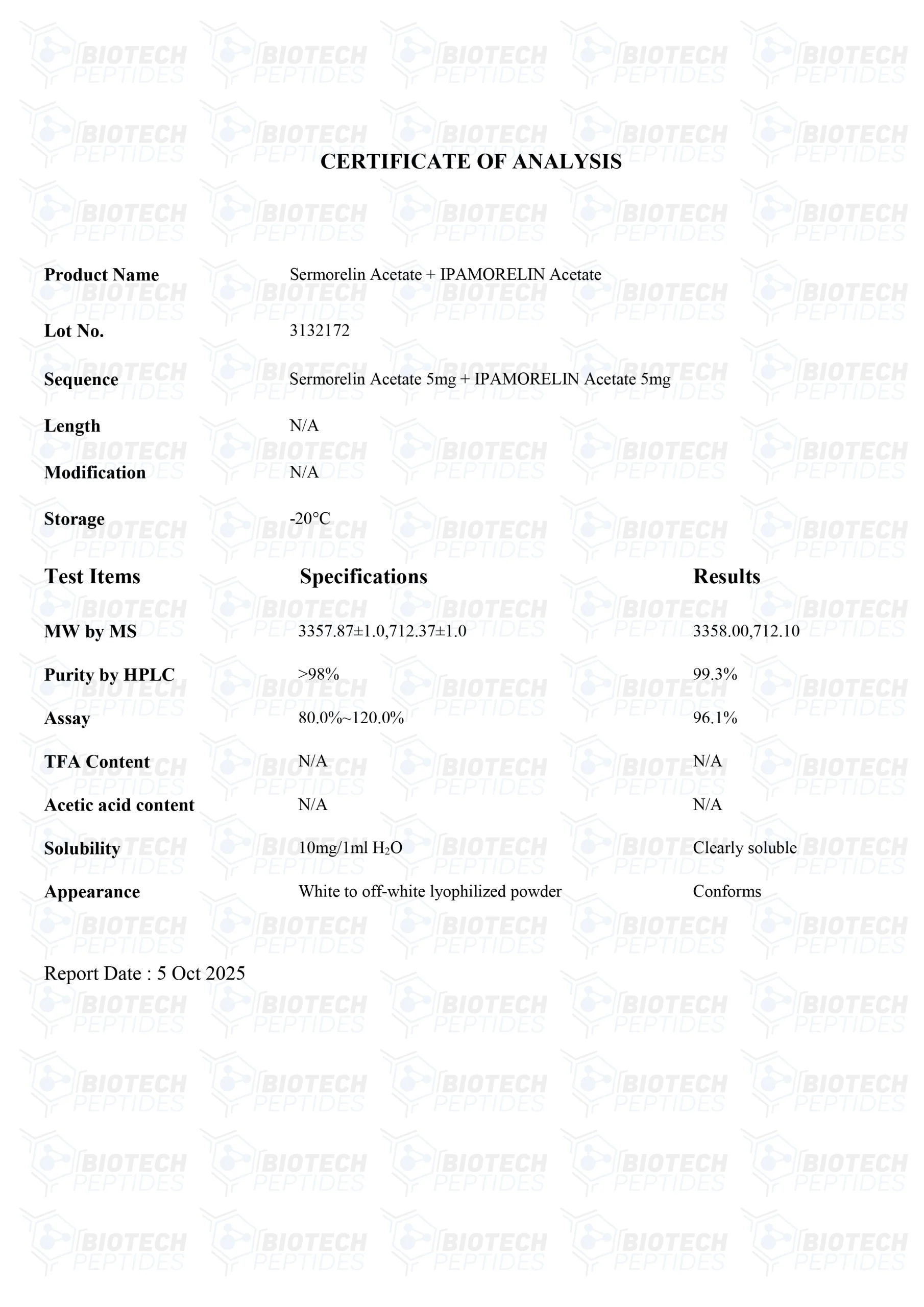 Sermorelin Specifications