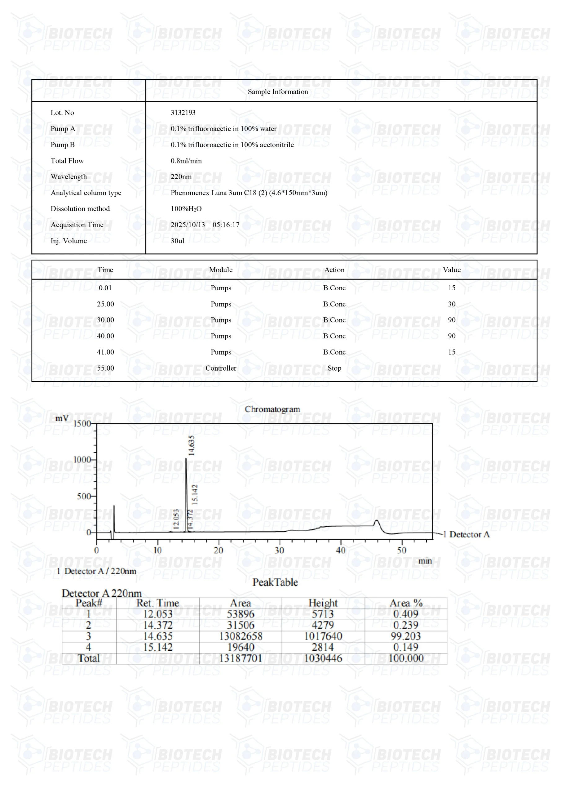 Sequence: Ac-Ser-Asp-Lys-Pro-Asp-Met-Ala-Glu-lle-GluLys-Phe-Asp-Lys-Ser-Lys-Leu-Lys-LysThr-Glu-Thr-Gin-Glu-Lys-Asn-Pro-Leu-Pro-Ser-Lys-GluThy-lleGlu-Gin-Glu-Lys-Gin-Ala-Gly-Glu-Ser