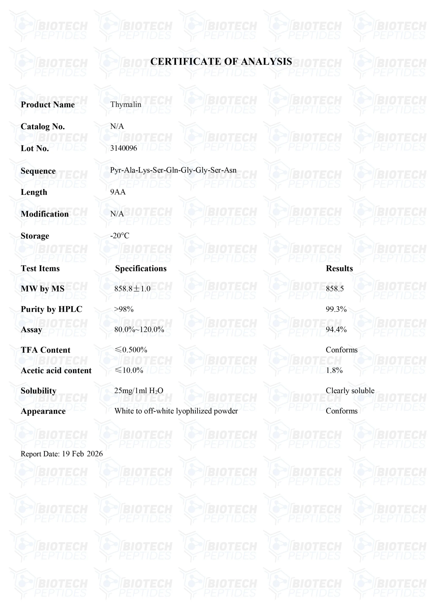 Thymalin peptides are Synthesized and Lyophilized in the USA.